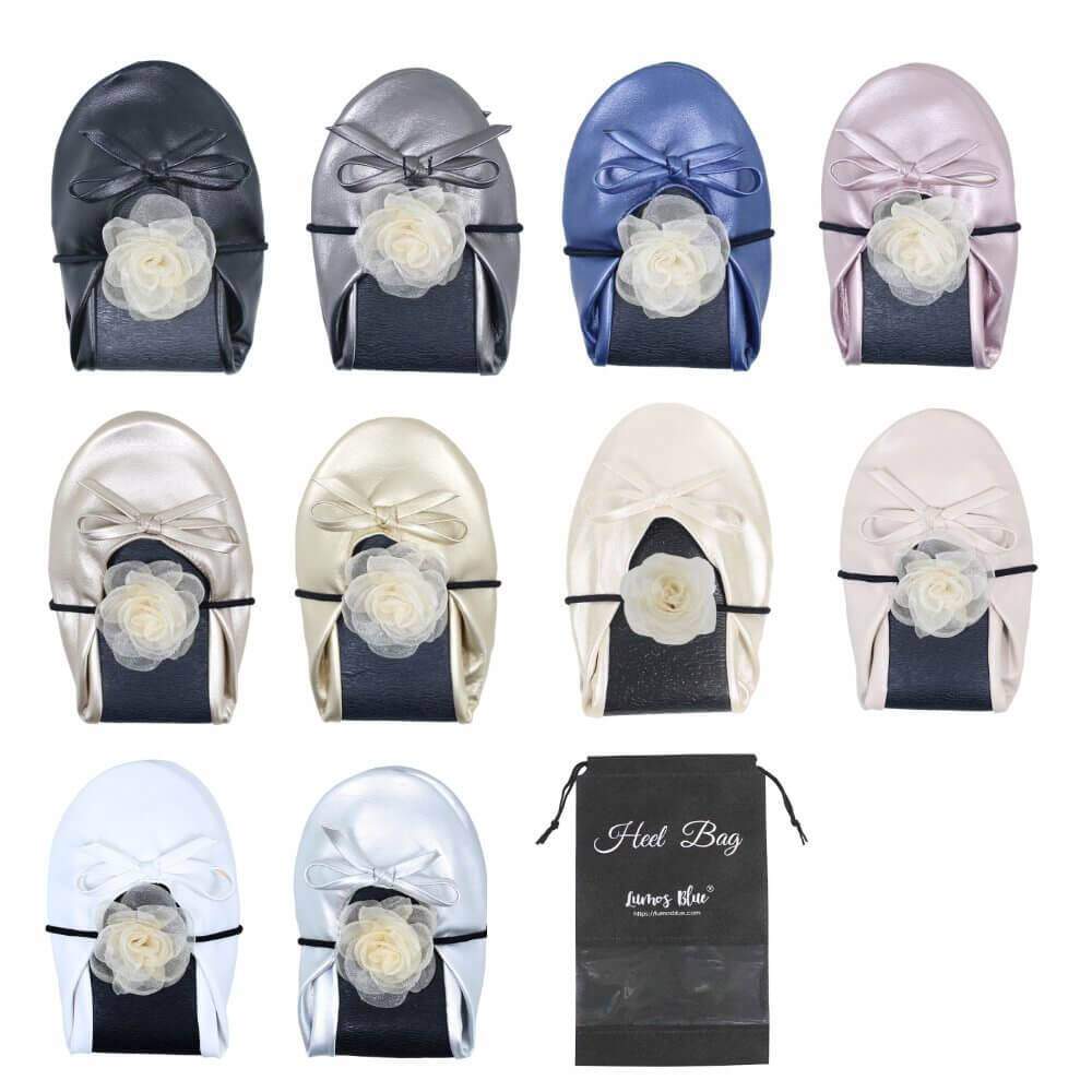 Lumos Blue flats are lightweight and with matching drawstring heel bags, which means you can easily fold up the shoes and carry them in your bag anywhere. Just think, when you are in high heels all day, then someone gives you a pair of foldable flats, that’s really a good backup!